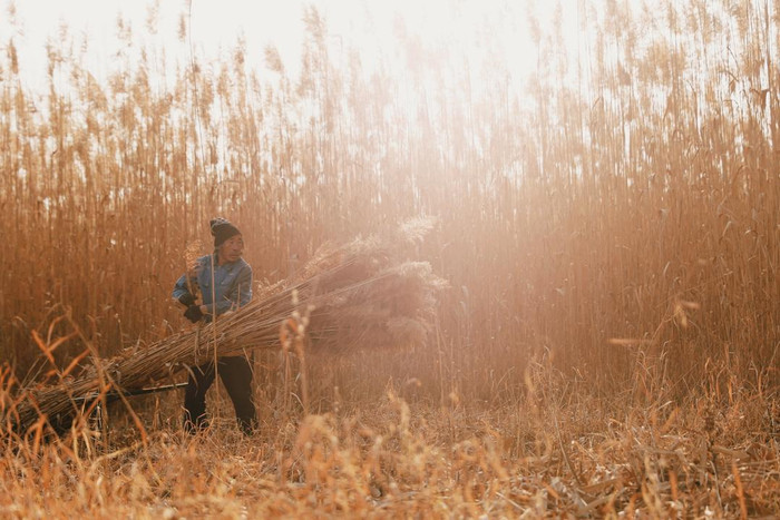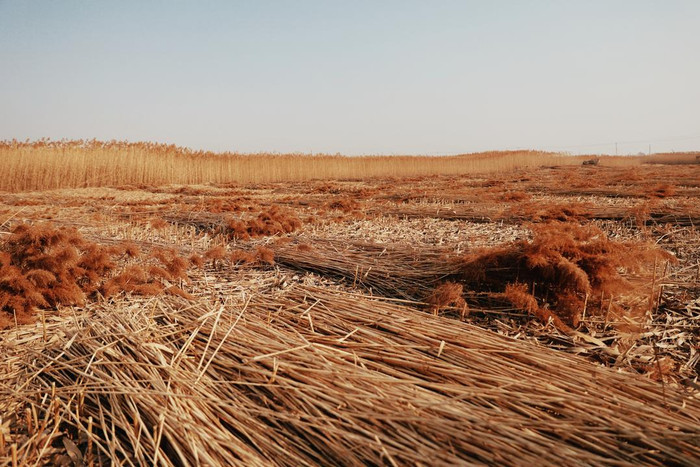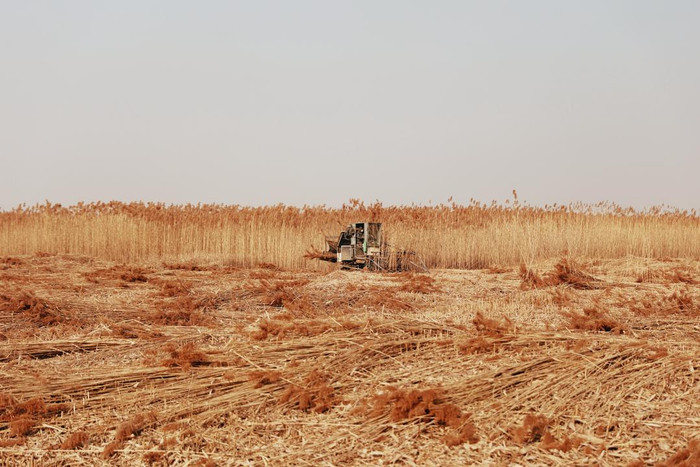 这是湖区延续了百年的劳作方式,是这片河道纵横的土地上,最具风土人情的乡愁。许多湖区人,祖祖辈辈都在这里割过芦苇。这里的芦苇“乘过”叮当作响的马车,也“坐过”湖区人的“一叶扁舟”。如今,除了一如既往挥舞的镰刀,这片土地又多了机械的轰鸣之声,传统的劳作方式与新的机器在这里产生了交织,碰撞的不仅仅是生产要素,还有人文情怀和期待。